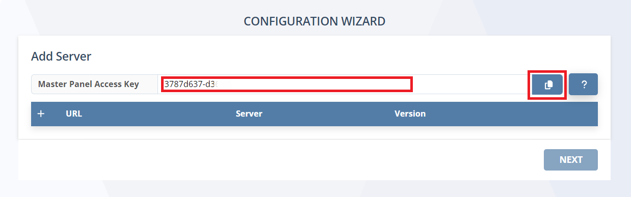 3. Copy the Master Panel Access Key (which can be done by clicking the Copy (
