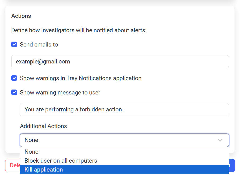- Block user on all computers: To automatically block the user from performing forbidden actions.