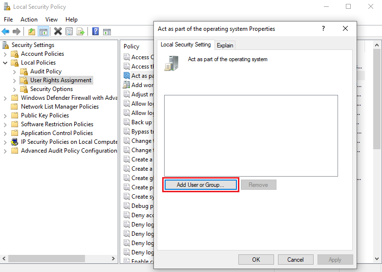 • Log on as a service