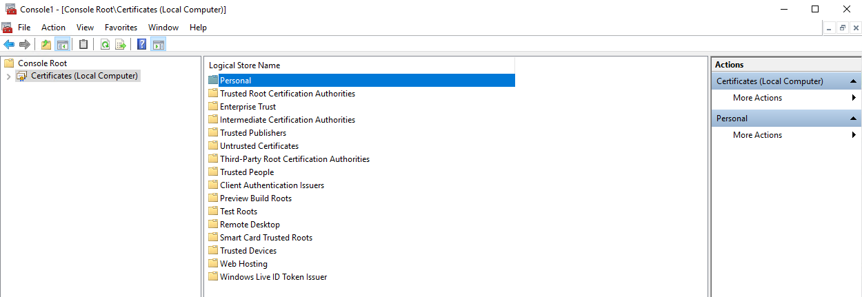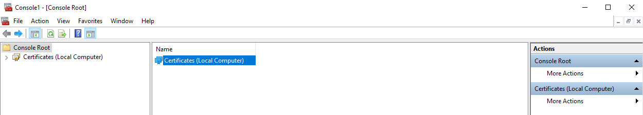 7. In the Console1 - [Console Root] window, double-click on Certificates (Local Computer) in the Name pane (in the middle).