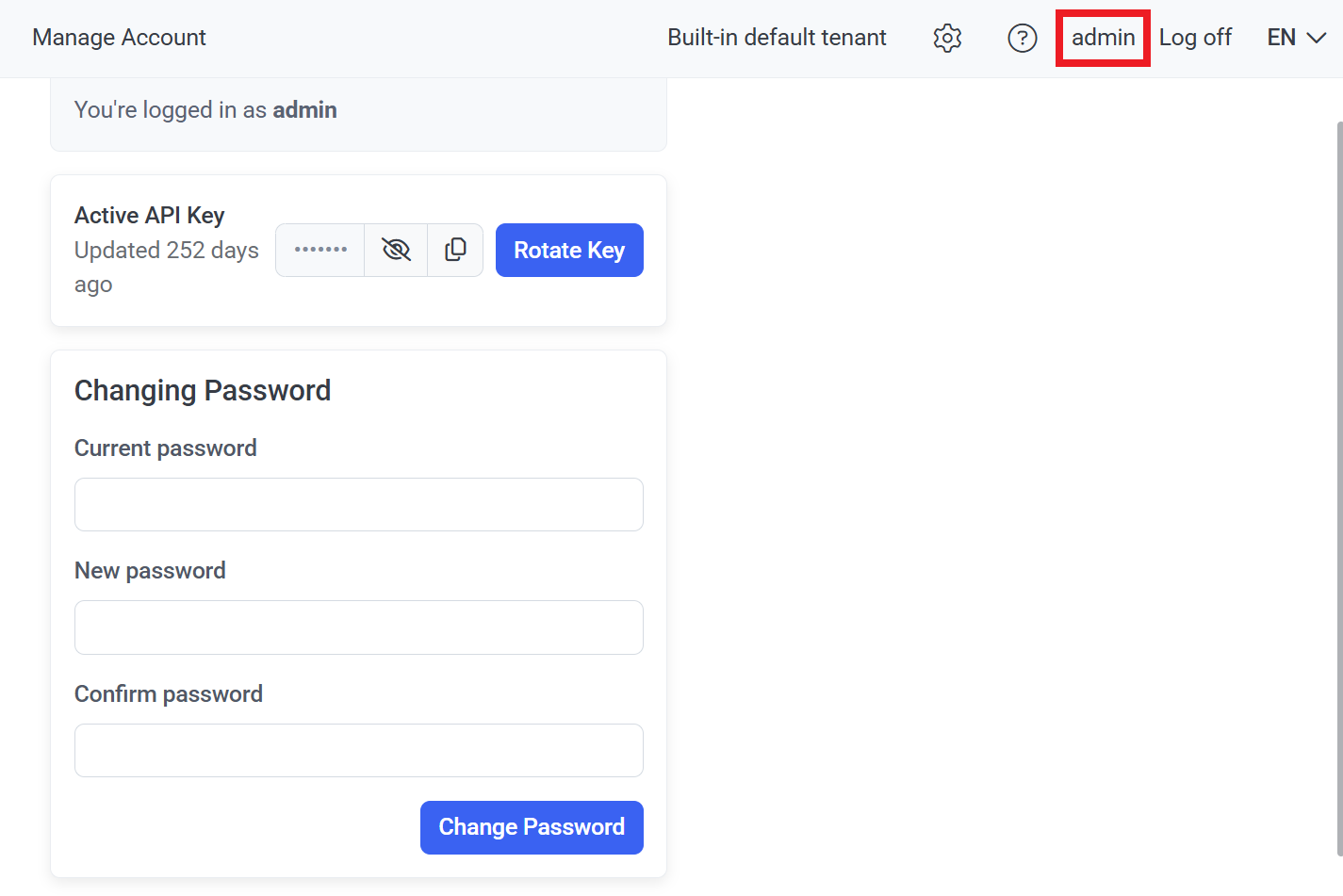 1. Click your user name (in the top right of any Management Tool page).