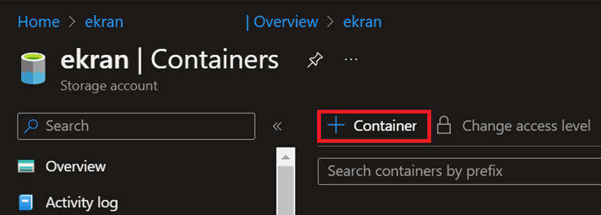 The configuration described in the steps below creates an Azure Blob storage container with anonymous access from a selected virtual network only. For this reason, it is important to use the virtual network that Syteca was deployed on.