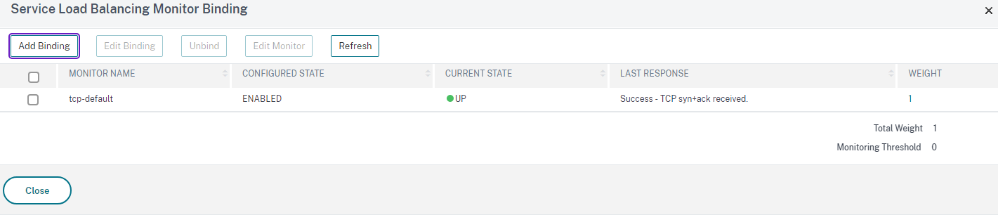 1. In the Monitors section, click on No Service to Load Balancing Monitor Binding.