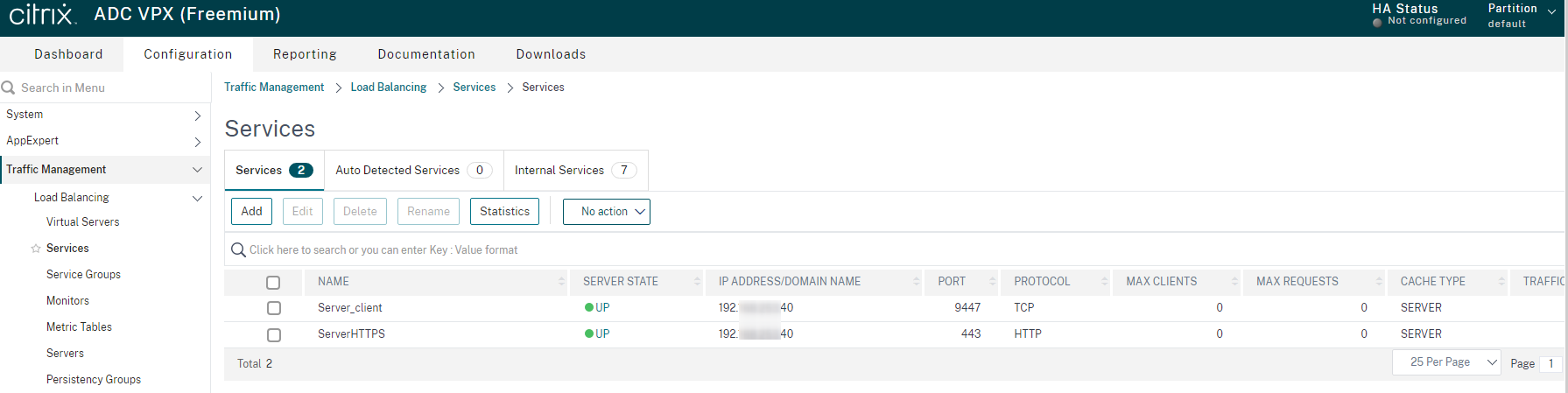 1. Go to Traffic Management > Load Balancing > Services, and click Add to configure a new service.