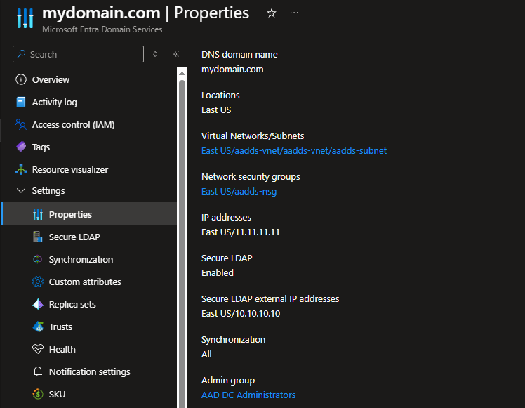 NOTE: The following information may also be useful for reference: Tutorial - Create a Microsoft Entra Domain Services managed domain - Microsoft Entra ID | Microsoft Learn