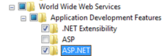 Windows 7 | Make sure that all the following checkboxes are selected in the Windows Features window and then click OK: • Internet Information Services > Web Management Tools > IIS Management Console • Internet Information Services > World Wide Web Services > Application Development Features > ASP.NET • Internet Information Services > World Wide Web Services > Common HTTP Features > Static Content |