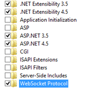 Windows 8.1 | Make sure that all the following checkboxes are selected in the Windows Features window and then click OK: • .NET Framework 4.5 Advanced Services • Internet Information Services > Web Management Tools > IIS Management Console • Internet Information Services > World Wide Web Services > Application Development Features > ASP.NET 4.5, and WebSocket Protocol