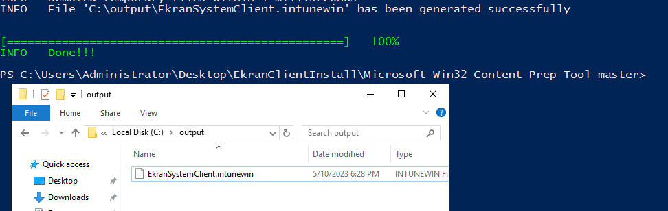 6. After running the command, the SytecaClient.intunewin file should be displayed in the C:\output folder.