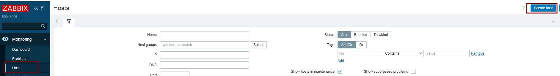 • Host groups: Select one of the default groups (or one that you have created previously).