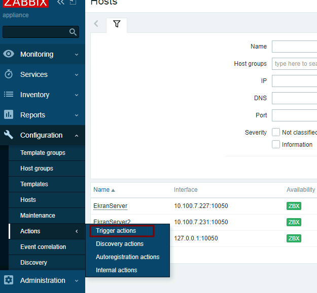 Configuring Zabbix to Monitor the Status of the EkranServer Service