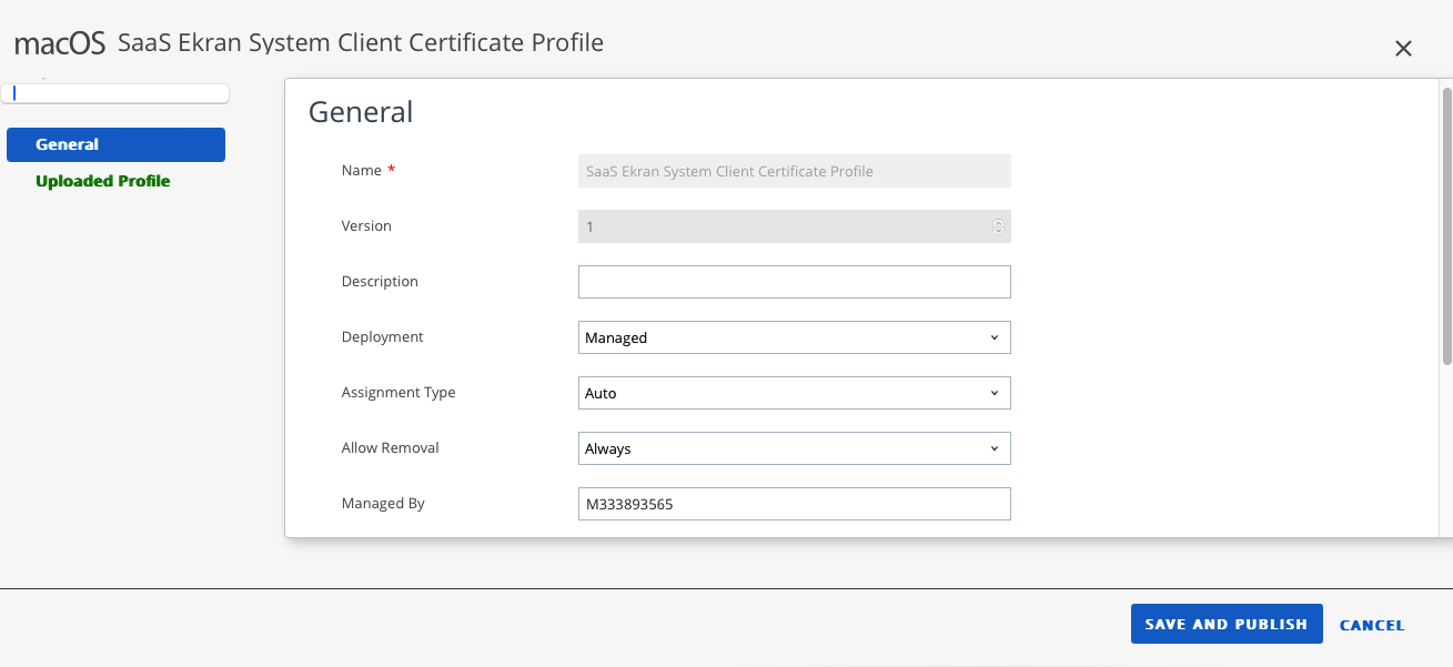 8. Configure the settings for the profile deployment (as shown in the screenshot below), and also select the required smart group in the Smart groups field (not shown in the screenshot below).
