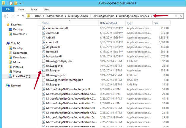 4. In the APIBridgeSampleBinaries folder, run IO.Swagger.