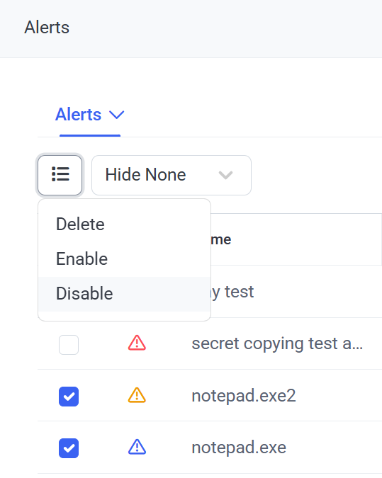 To enable/disable multiple alerts simultaneously, do either of the following: