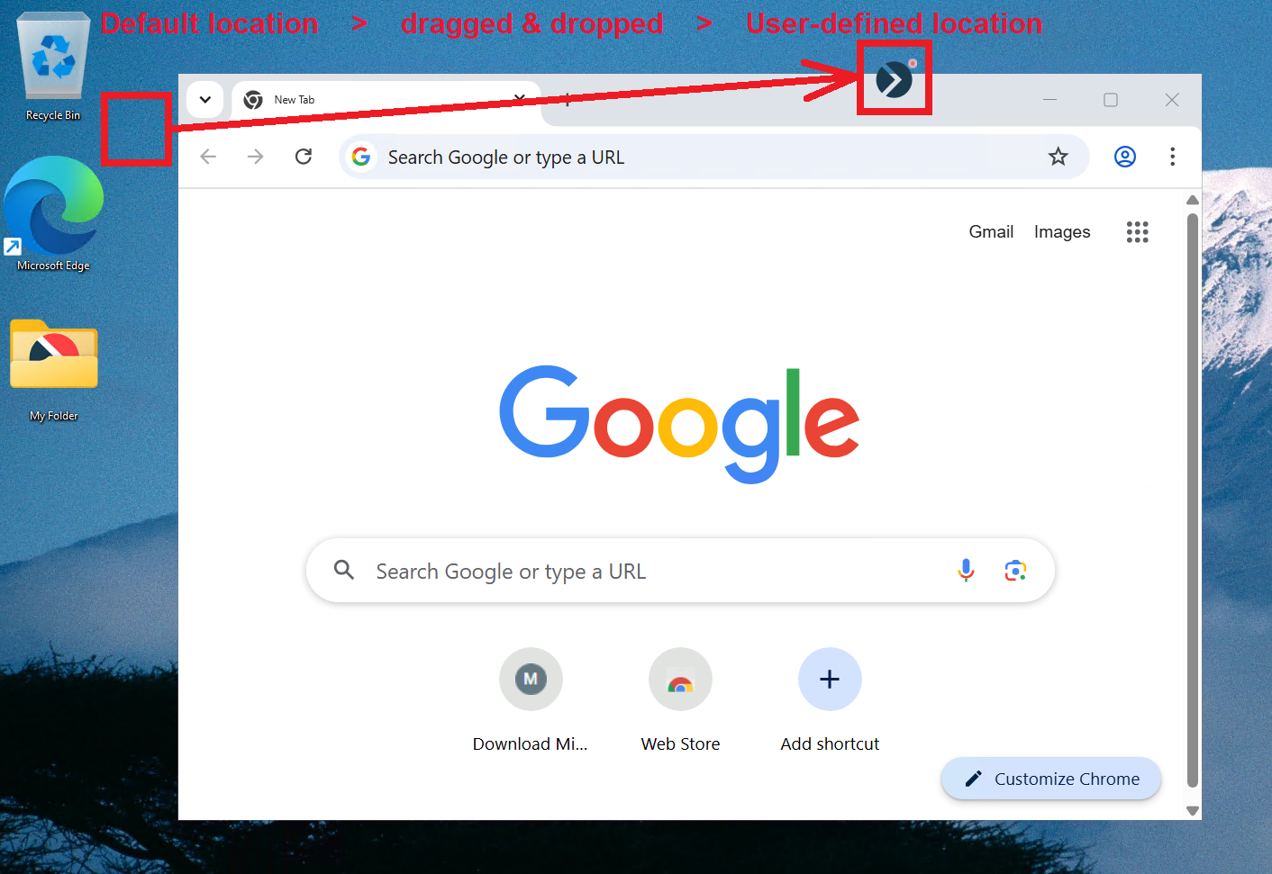 - Remember last manually set position (default value): To keep the icon in its current location for each user, so that whenever a user drags & drops the icon to a new location on the screen, it will remain in the new location, including the next time the same user logs in.