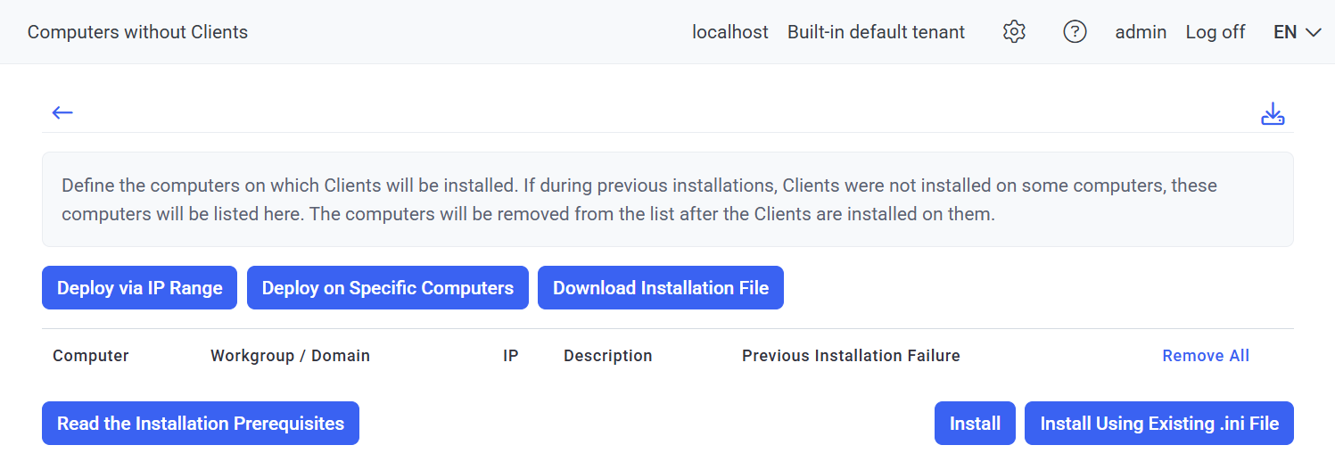 4. On the Computers without Clients page that opens, click the Download Installation File button at the top.