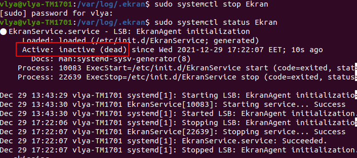 (and the following command can then be used to check that the services have stopped: sudo systemctl status Ekran).