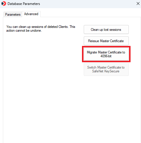 • [Syteca Encryption:] The RSA key length has now been increased to RSA-4096 data encryption for forensic export, as well as for the Syteca Master Certificate (after reissuing the Master Certificate for existing deployments, after first using the new "Migrate Master Certificate to 4096-bit" button to manually migrate to RSA-4096 encryption).