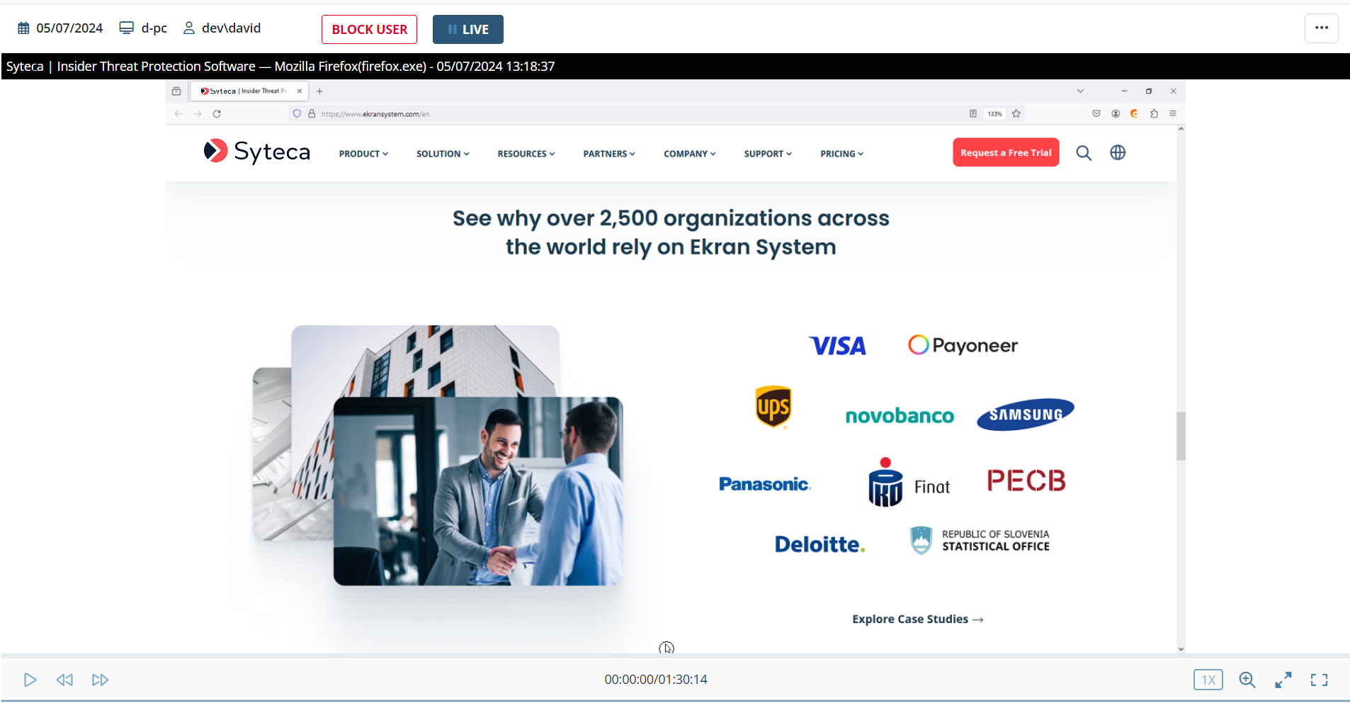 The Session Viewer allows you to view live Client sessions in real time, while monitoring of the Client computer is in progress.