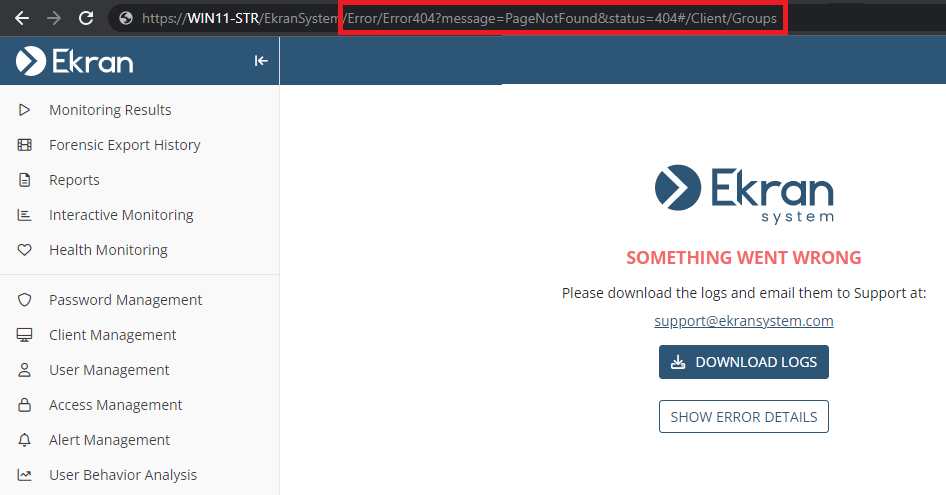 On the Clients page, on the Client Groups tab, an error is displayed instead of the data (with “Error404?message=PageNotFound” in the address bar URL).