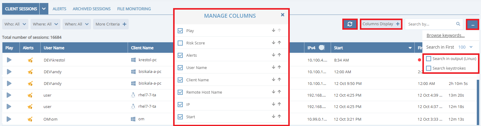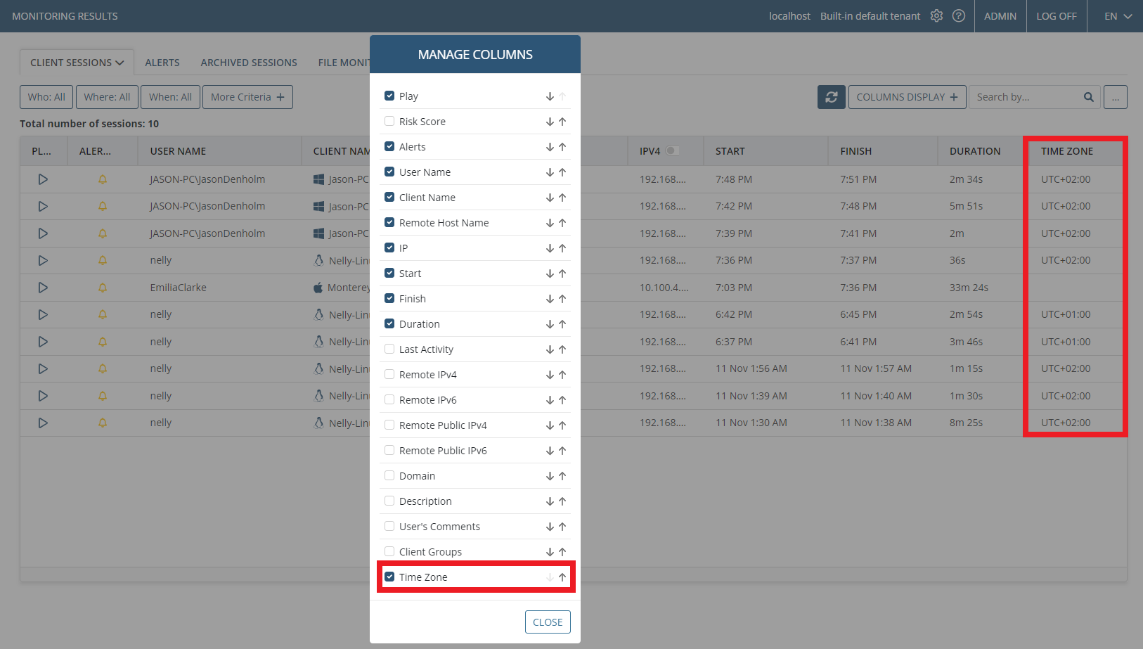 • Remote Host IP Filtering – new capability not to record local sessions added.