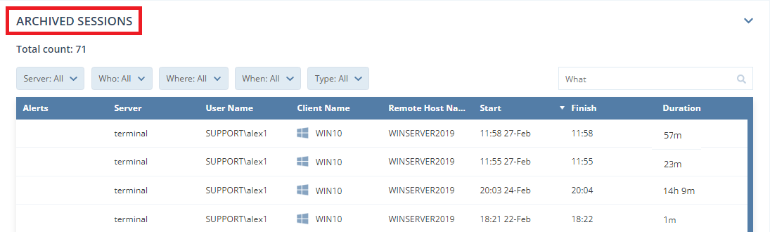 • Performance of Reports and of Syteca Data Connector – optimized significantly for processing of new sessions.