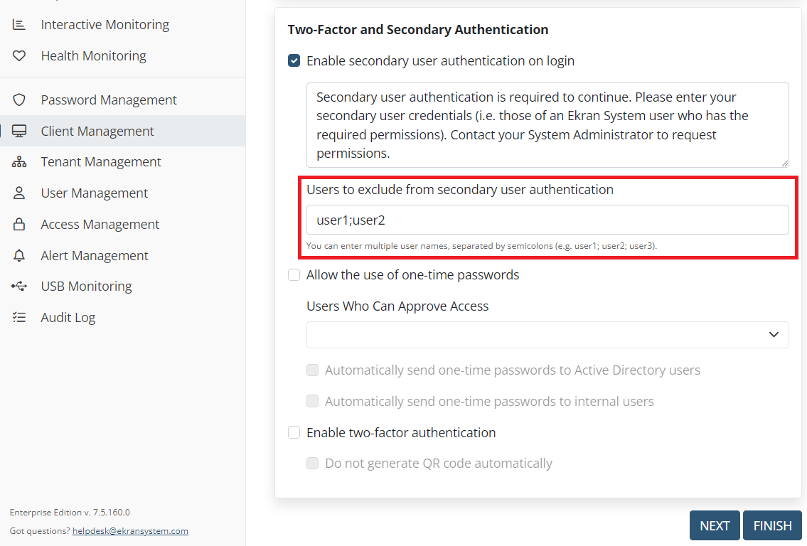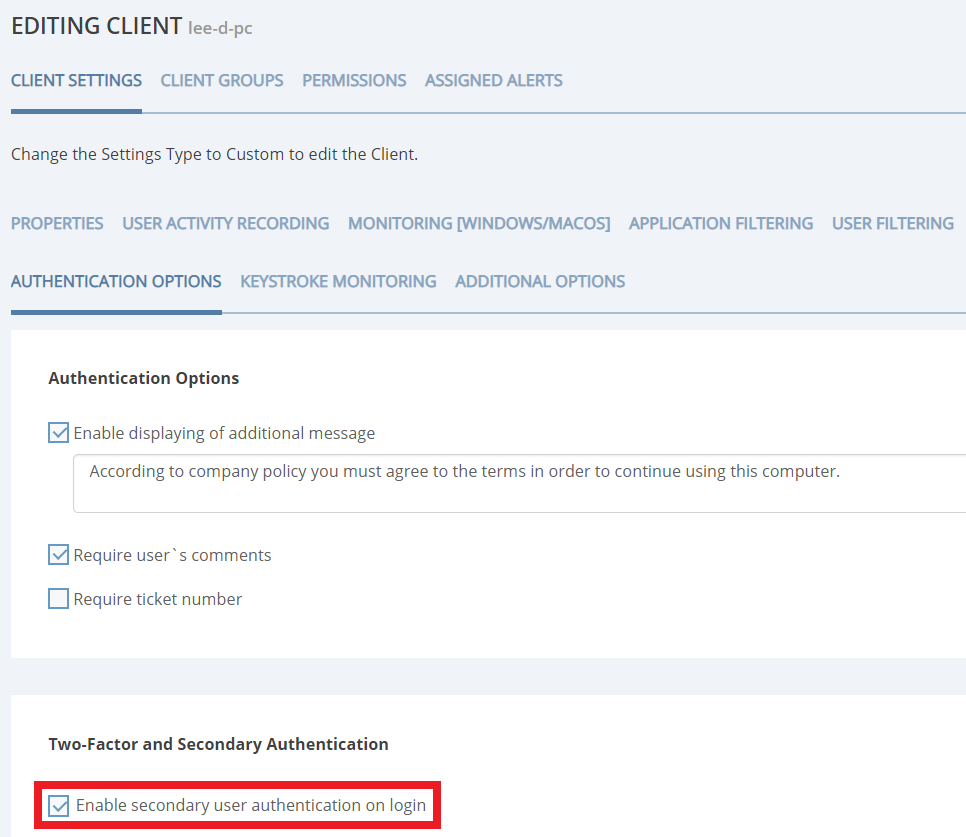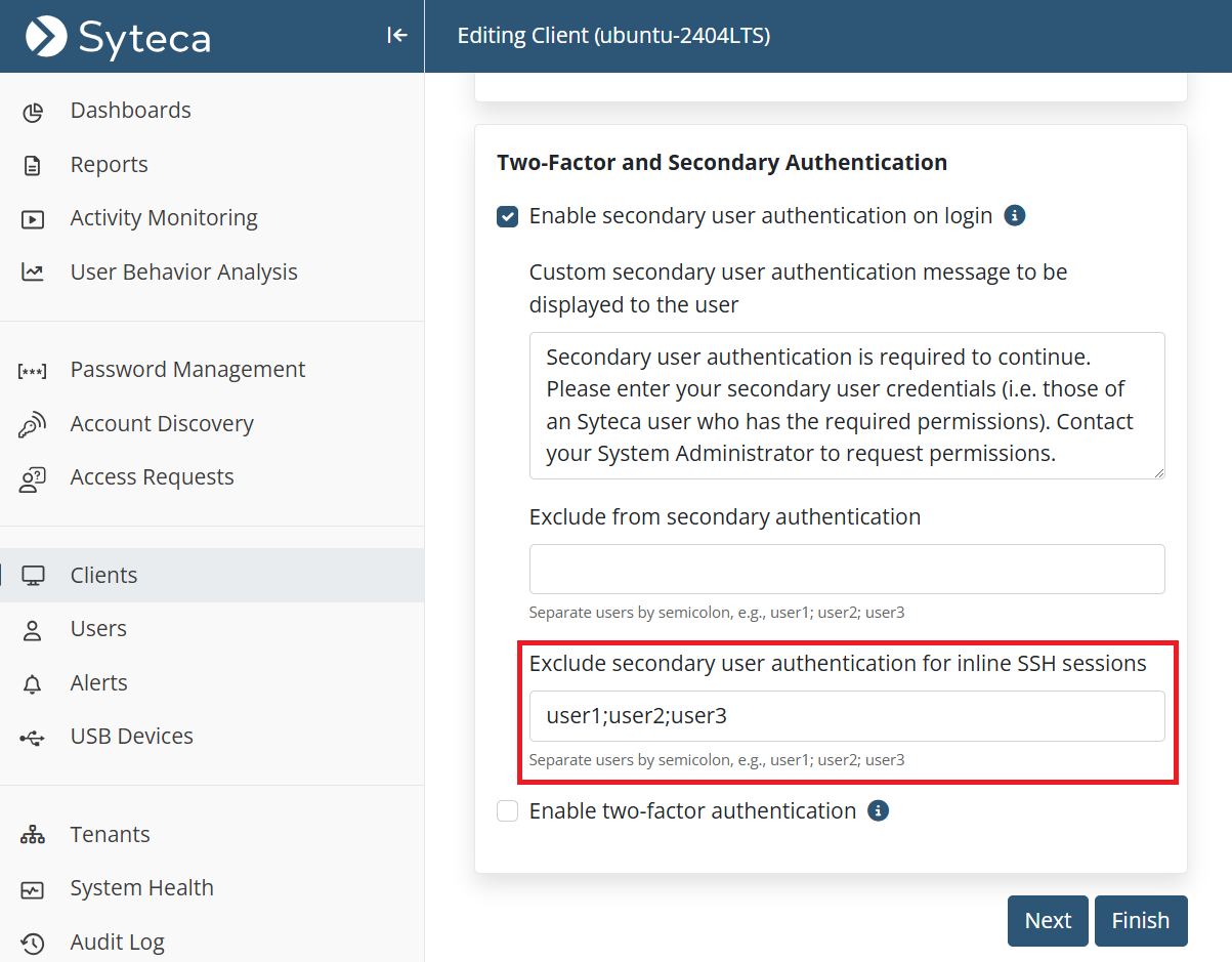 • Secondary user authentication (on Linux Clients) – capability to exclude individual users from checking secondary user authentication added.
