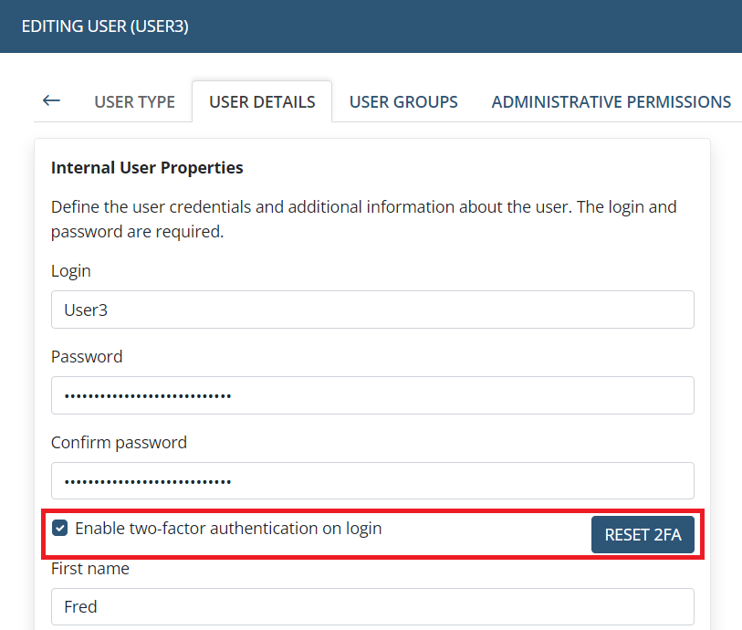 • Two-Factor Authentication tab. Sorting of rules – added.