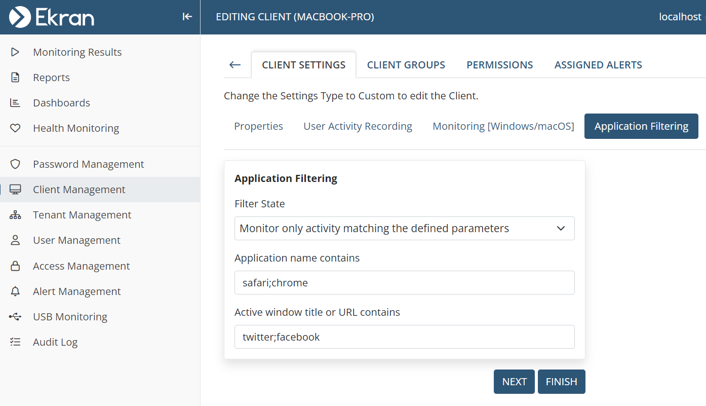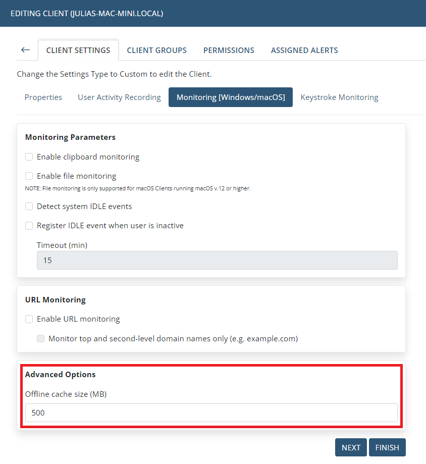 • macOS Clients URL Monitoring – added (Chrome and Safari browsers).