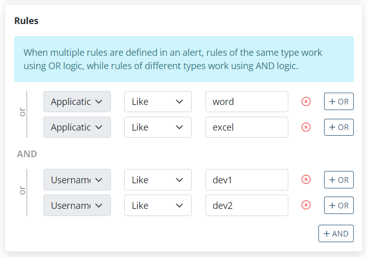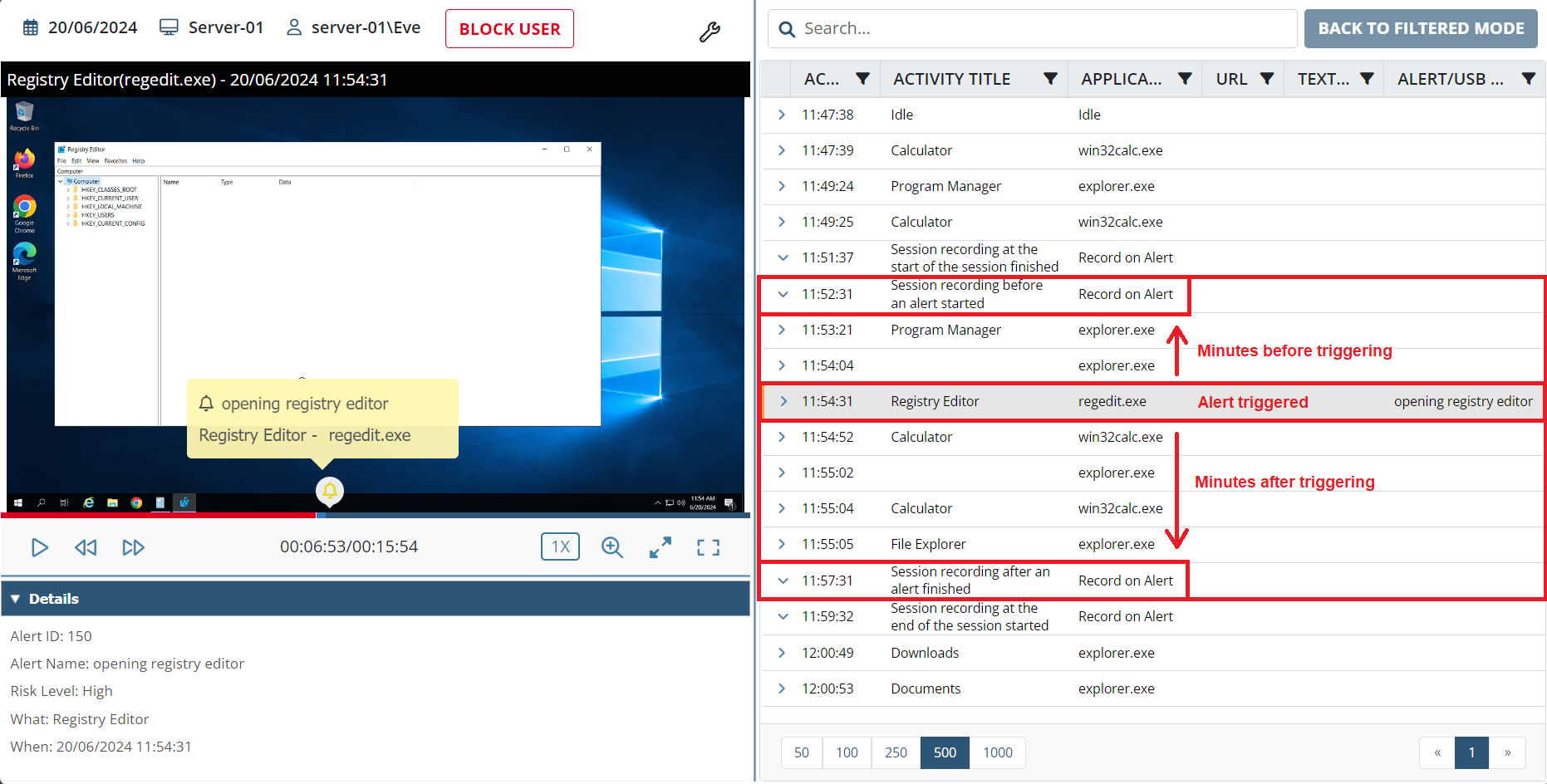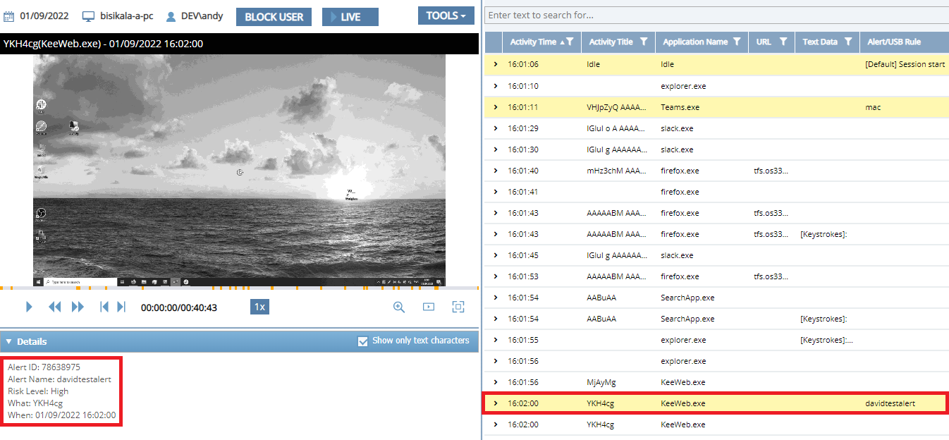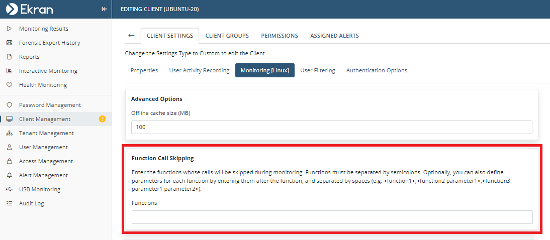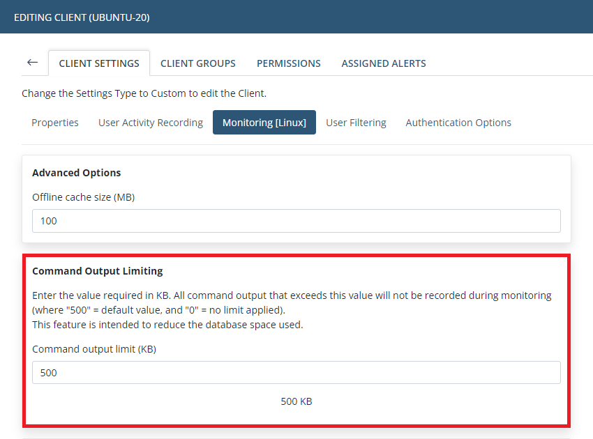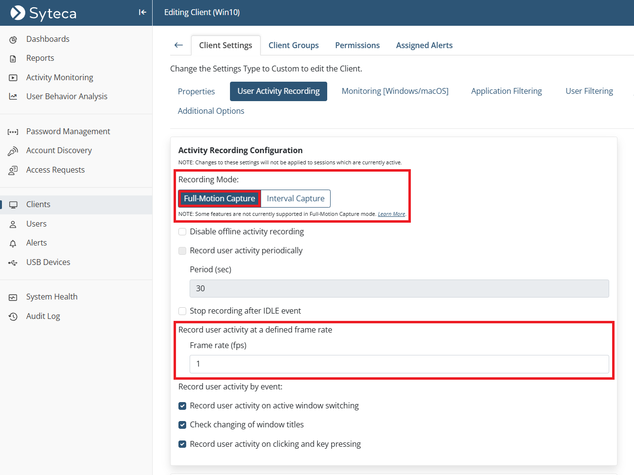 • [Monitoring Linux Clients:] The Record user activity only on alert or USB monitoring rule triggering option is now also available to record user activity on Linux Client computers only in the specified time periods before and after alerts are triggered (in the same way as for Windows and macOS Clients).