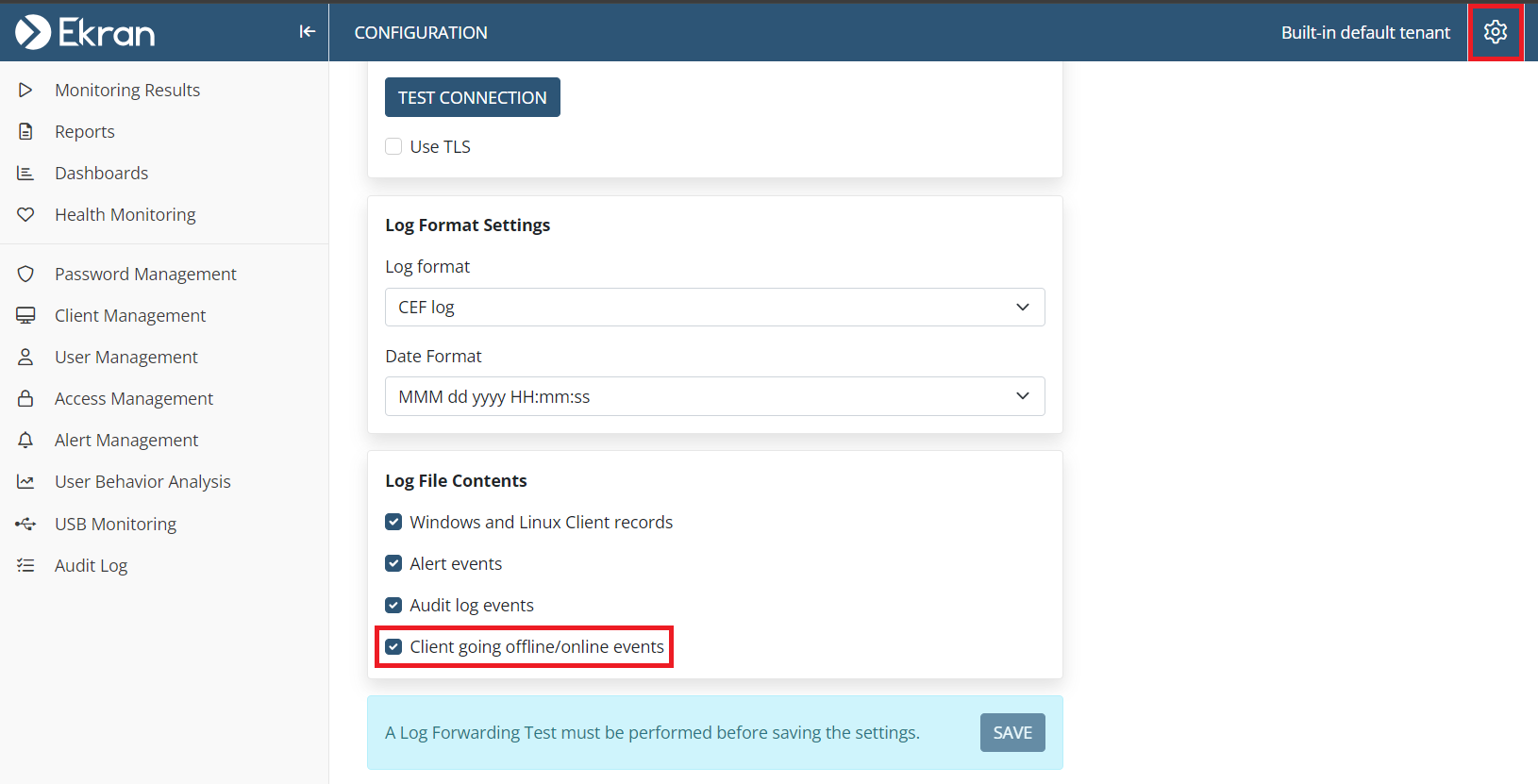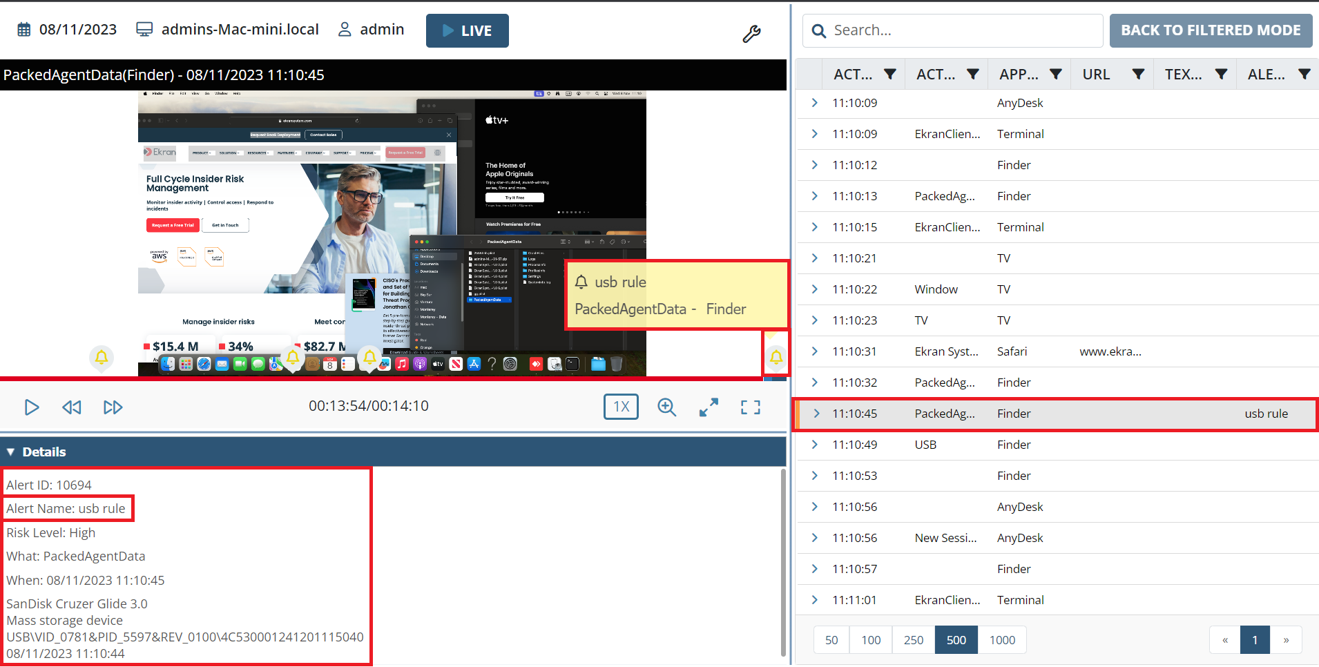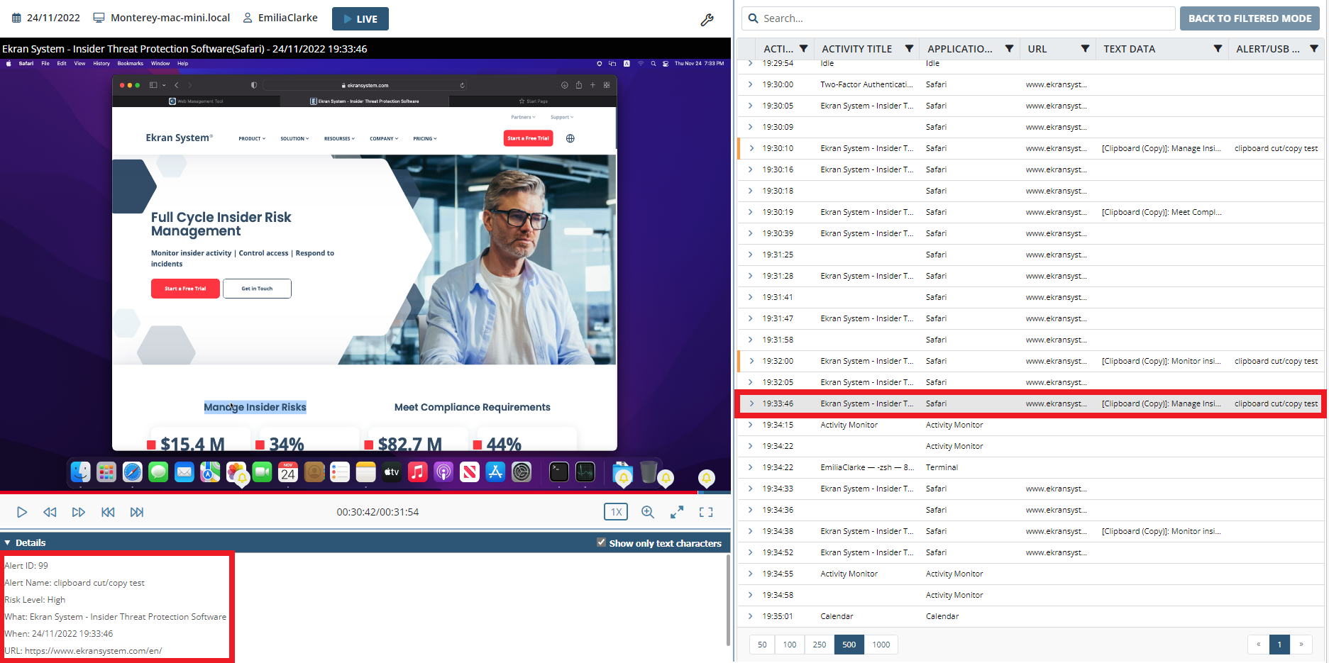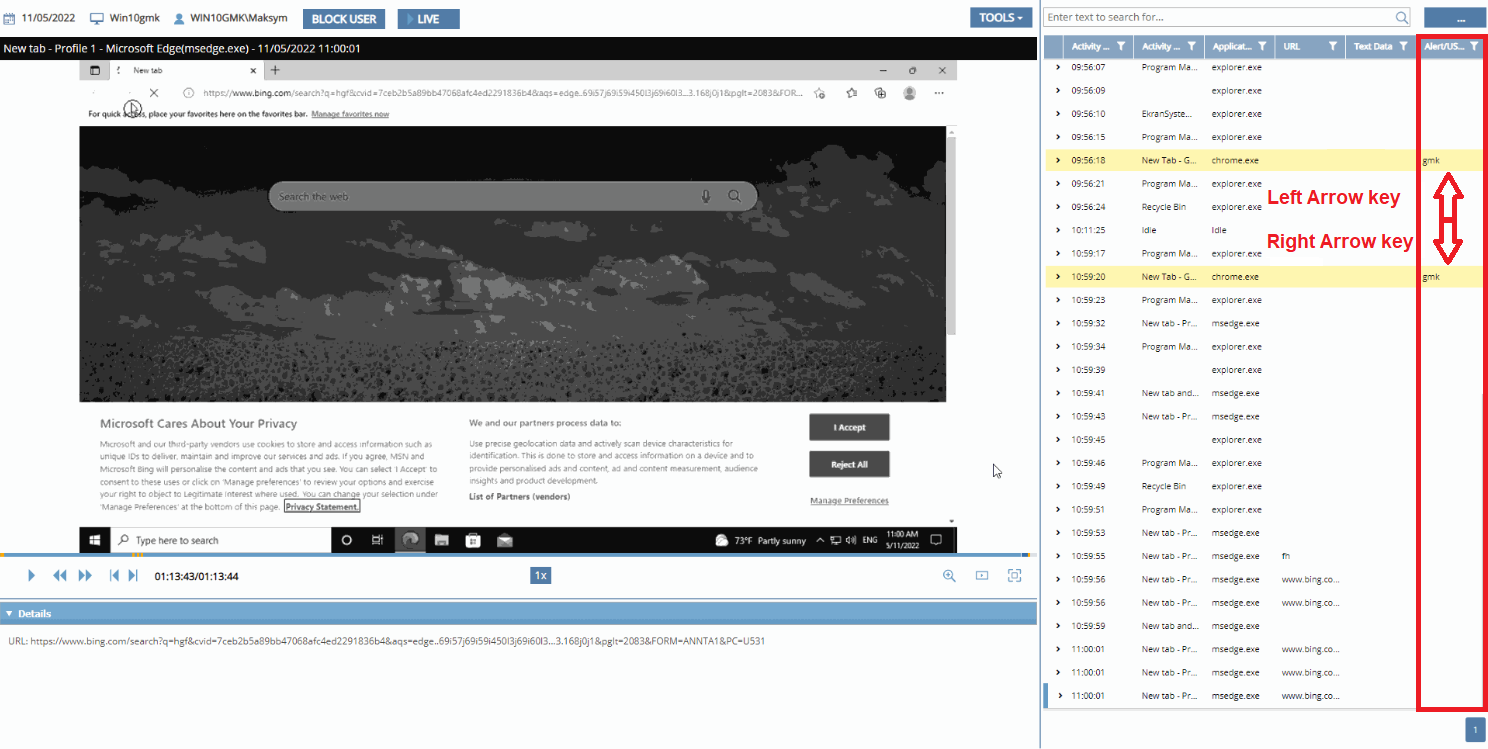 • [Monitoring Linux Clients:] The Record user activity only on alert or USB monitoring rule triggering option is now also available to record user activity on Linux Client computers only in the specified time periods before and after alerts are triggered (in the same way as for Windows and macOS Clients).
