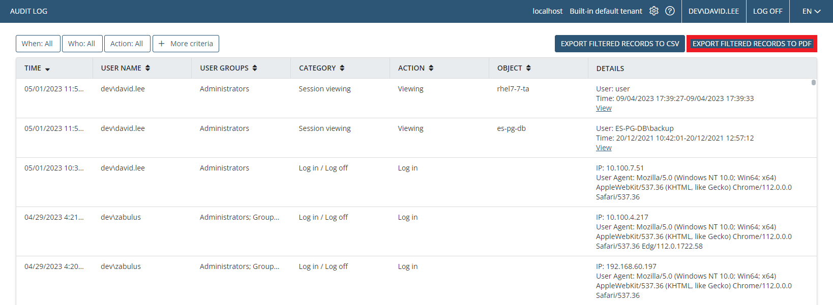 • Audit log filters – fixed.