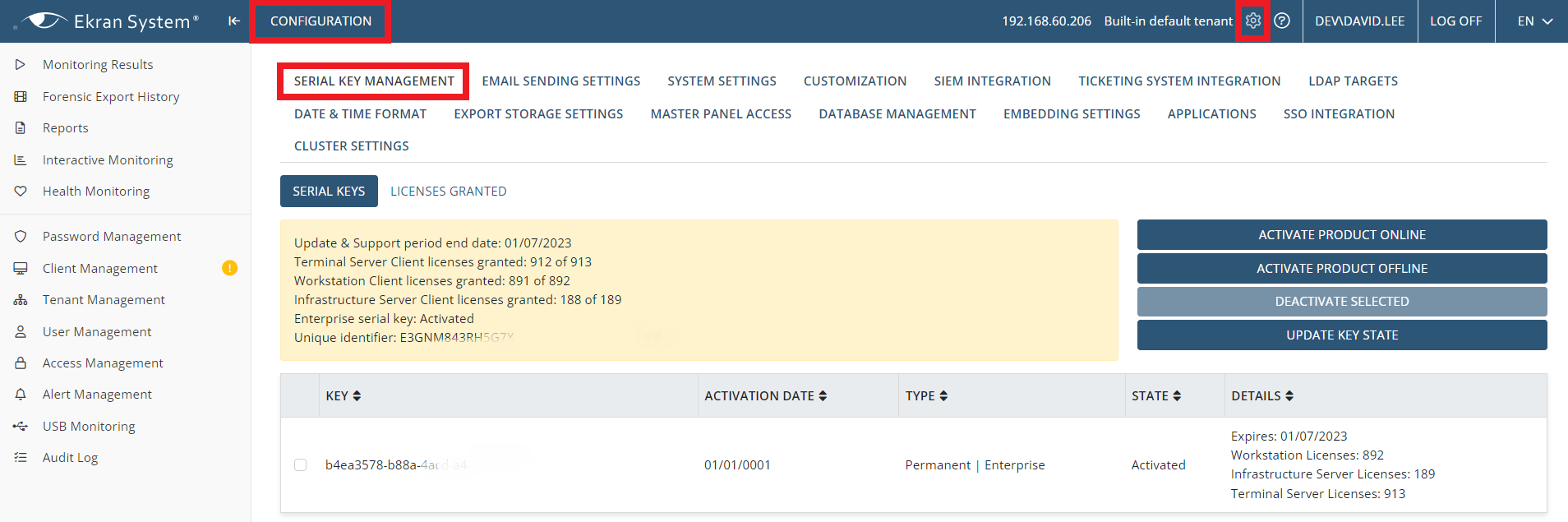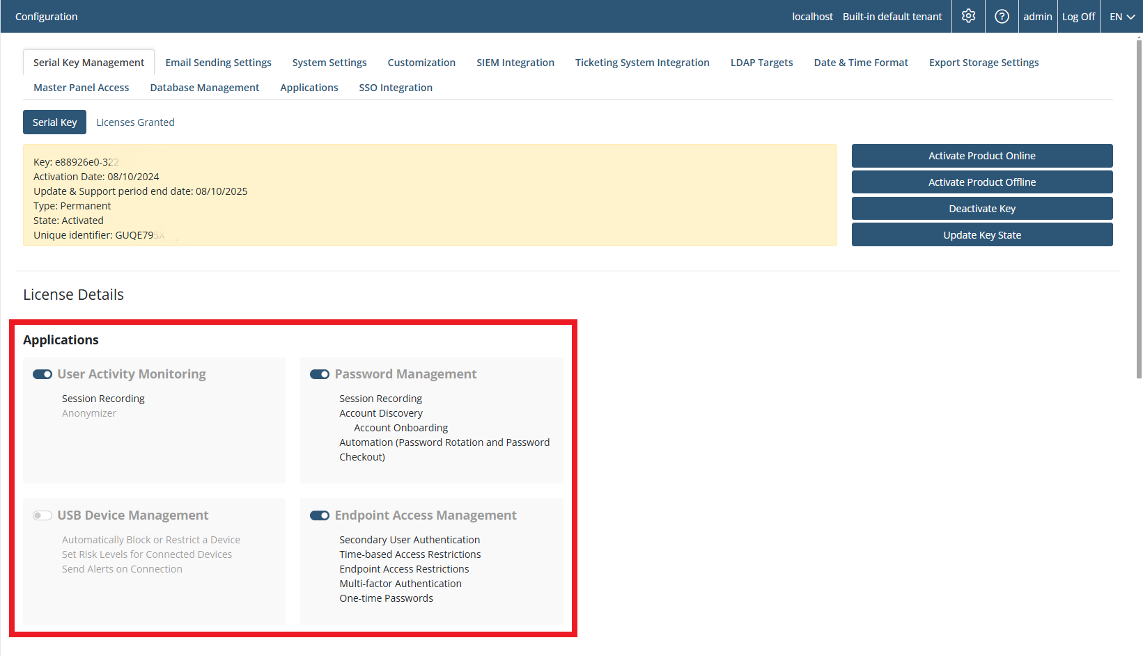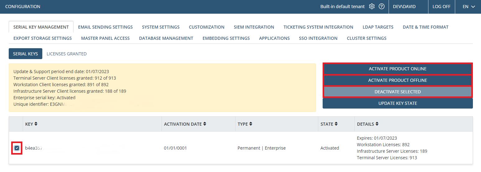 - License storage. Syteca can now operate with a single common pool of activated serial keys for use with multiple Application Server instances.