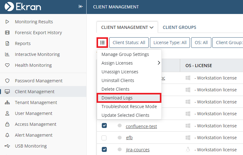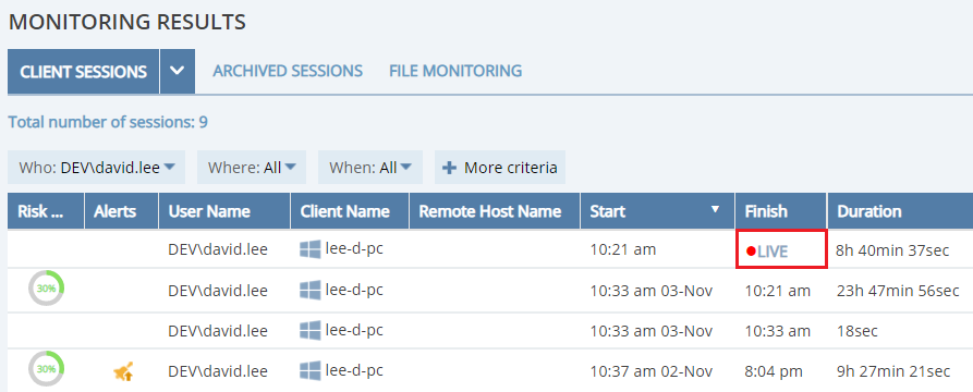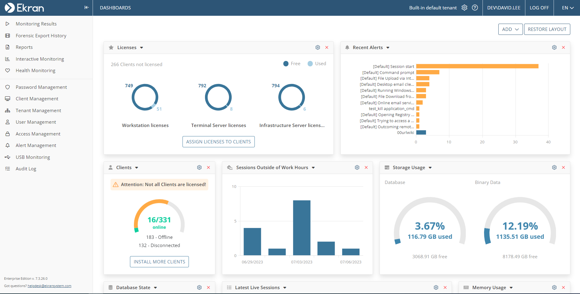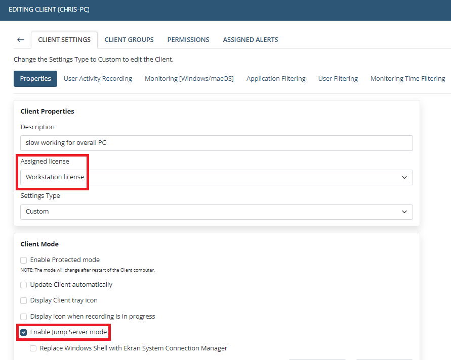 • Workstation licenses for Linux Clients. If you only need to monitor Linux GUI (X11) sessions on Linux Clients, you can now assign licenses of the Workstation type to them. All Workstations (Linux GUI, macOS and Windows) can now work from the same license pool. Note: only one Linux GUI session can be monitored at one time, and SSH sessions cannot be monitored.