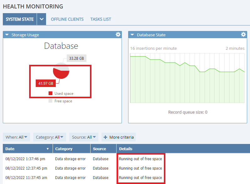• Rescue mode (on Linux Clients) – this feature will now be automatically applied to stop monitoring whenever the critical free space threshold is reached on Client machines – fixed.