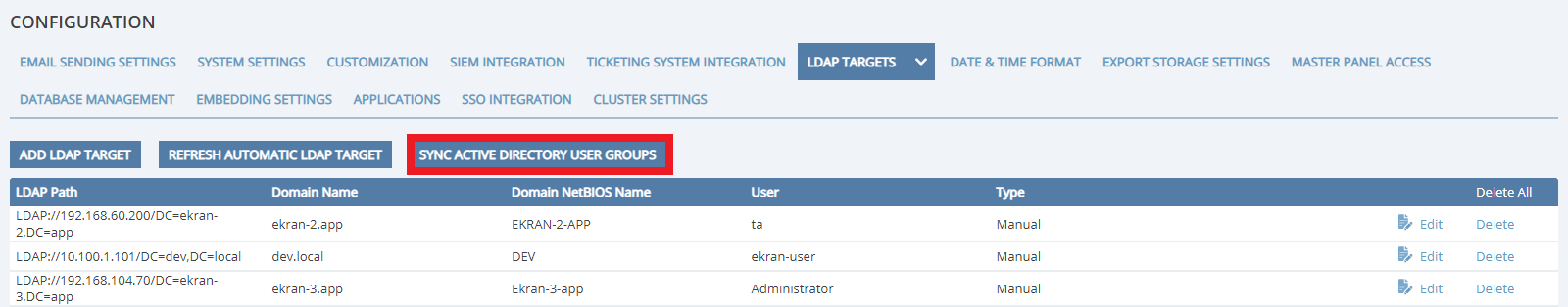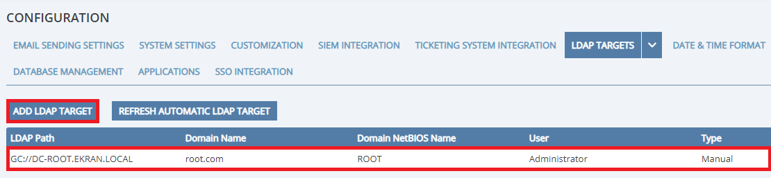 • [LDAP Targets:] LDAP Targets can now be added that are limited to an Organizational Unit (OU) within the LDAP Target domain.