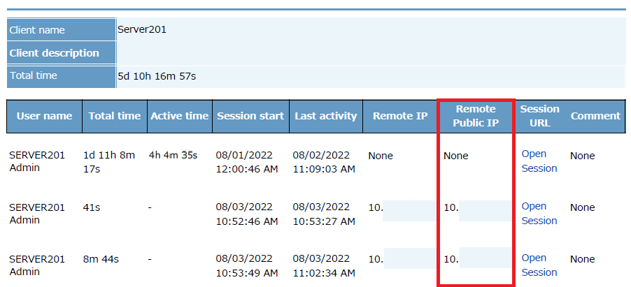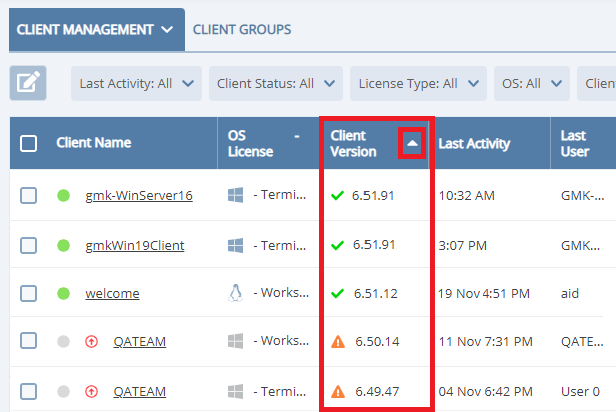 - The last activity time for Clients – is now displayed.