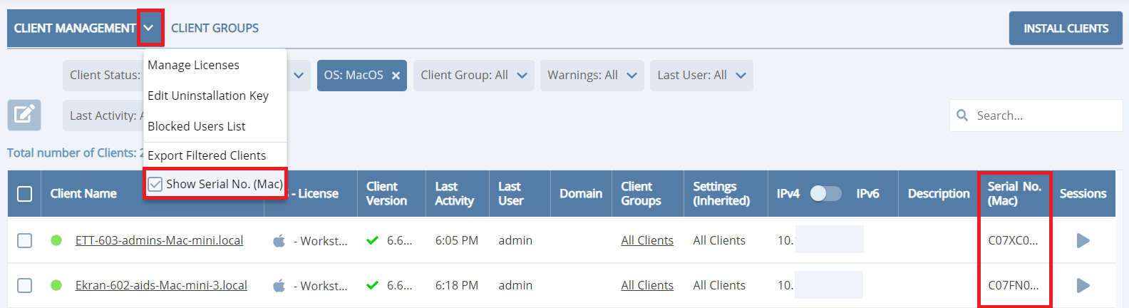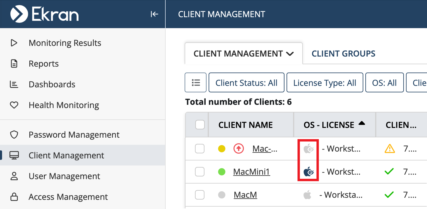 • [Monitoring macOS Clients:] In certain cases, macOS clients were not showing up in the Management Tool after installing them - fixed.