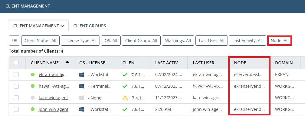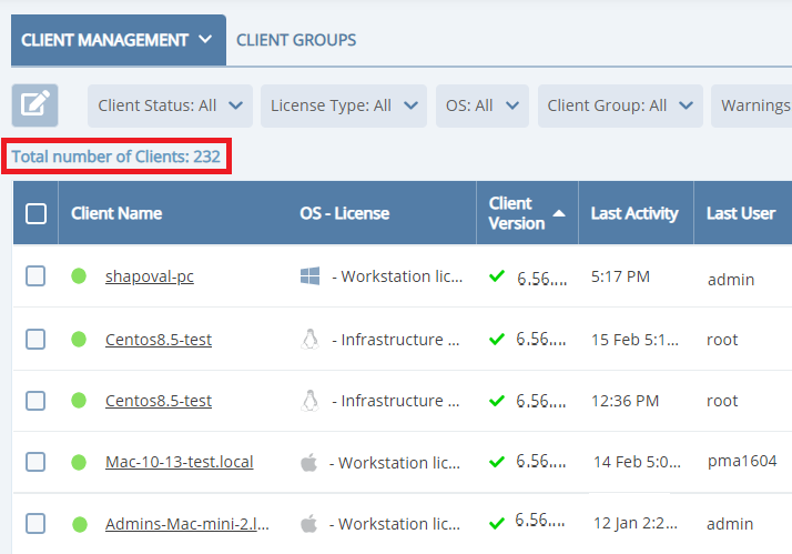 - The number of Client groups to which the Client belongs – is now displayed.