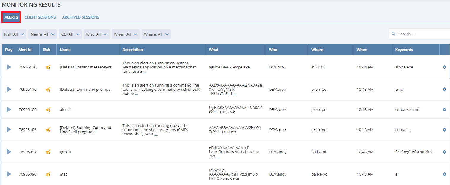 • Alerts (on Windows Clients) – now include a unique Alert ID, and the specific keyword that has triggered the alert, in both email notifications and the Alert Viewer.