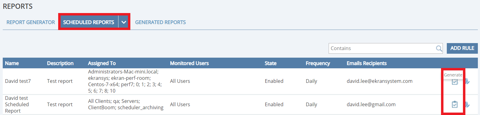 NOTE: If a scheduled report contains multiple report types, each type of report is sent in a separate email.