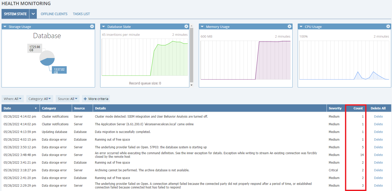 • [Viewing System Errors and Warnings:] Many unnecessary non-threatening errors/warnings were added to the logs and the System Health grid after updating to Syteca version 7.20 (7.20.596),