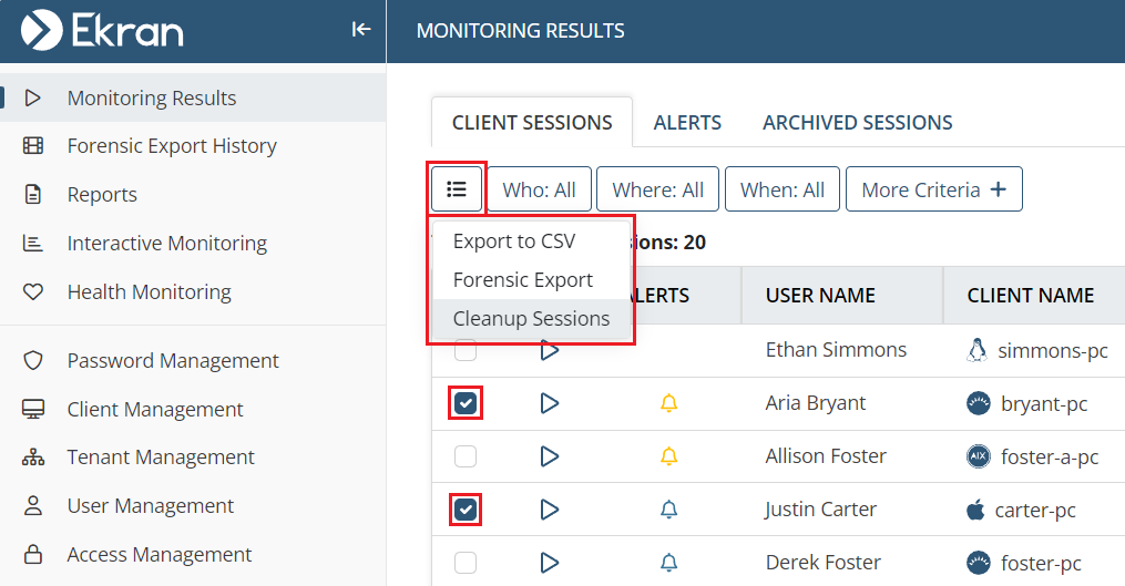 - Navigation to Client sessions in one click – added.