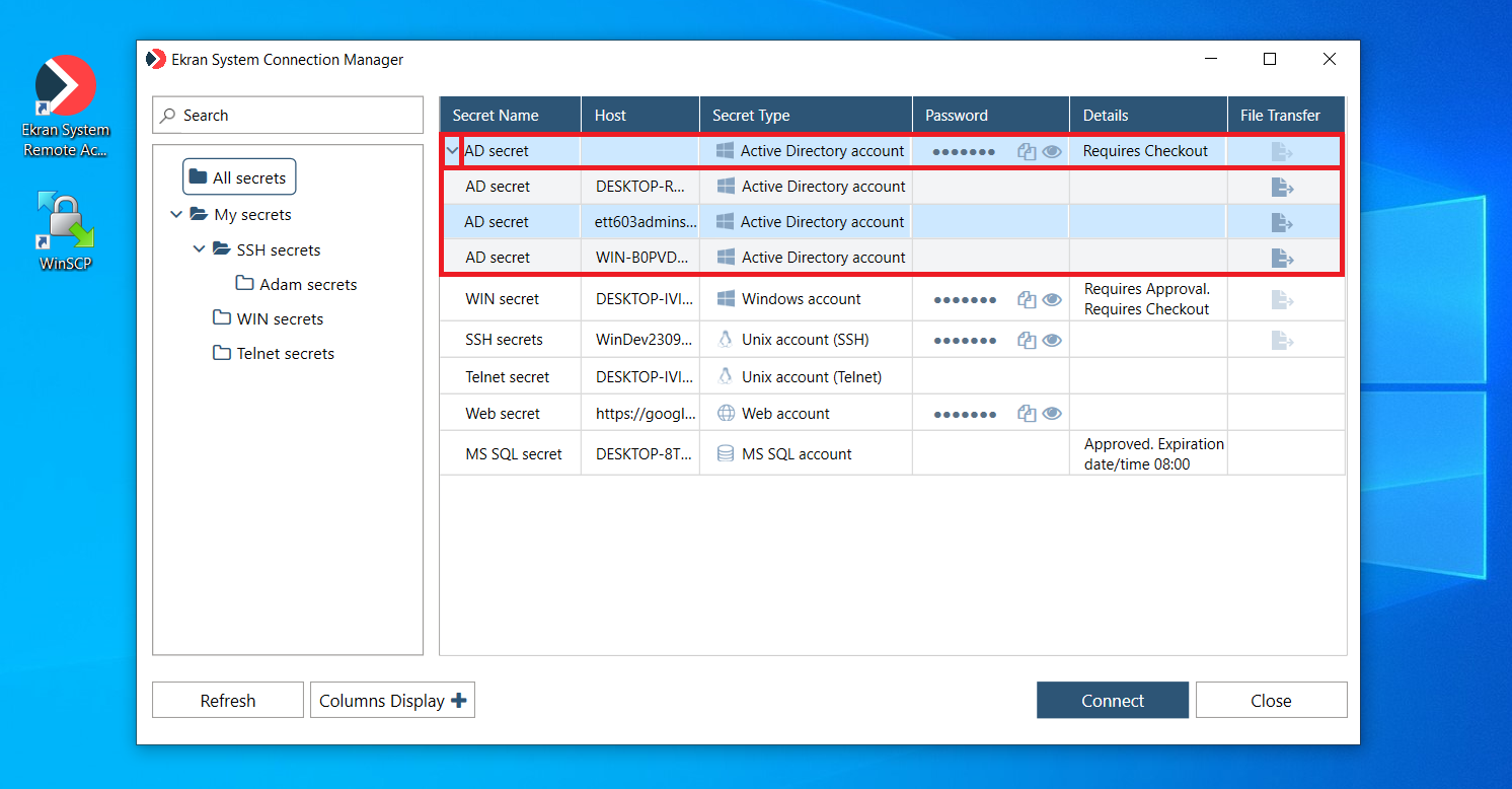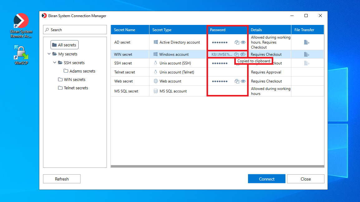 • Secrets in the Syteca Connection Manager (PAM) were displayed only after clicking the Refresh button (in certain cases) – fixed.