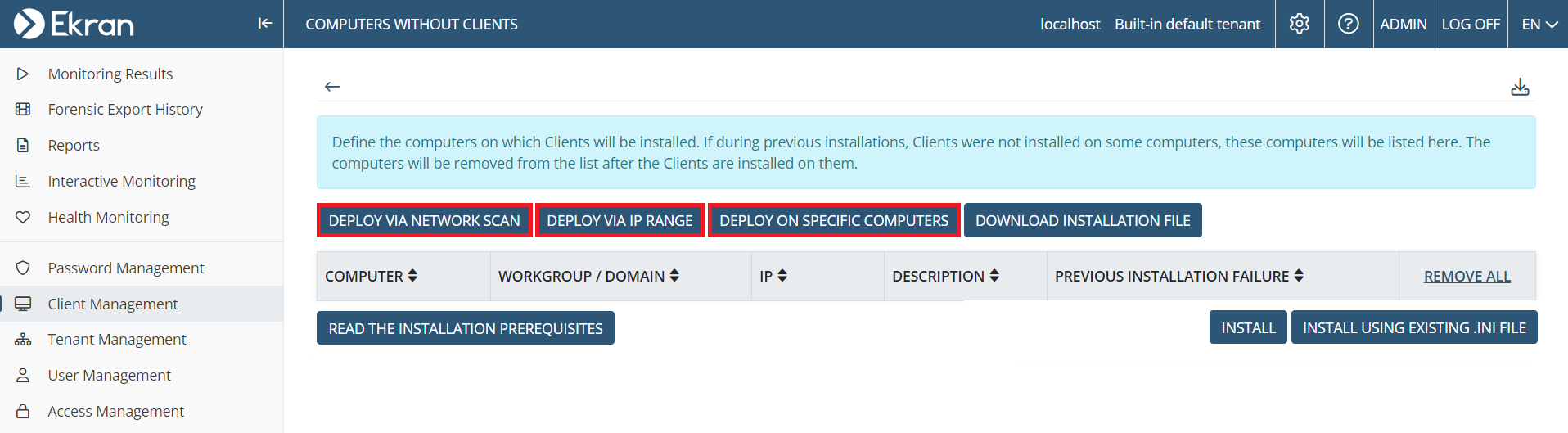 • [Monitoring Windows Clients:] In certain cases, the Task Manager could not be opened on Windows Client computers (due to the EkranClientSession.exe process) - fixed.