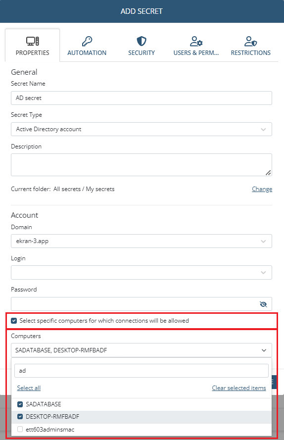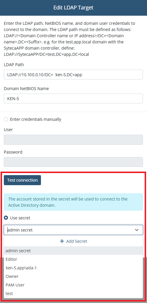 • [Using Secrets:] Active Directory accounts secrets used the wrong FQDN for connection to the allowed machine in certain cases - fixed.