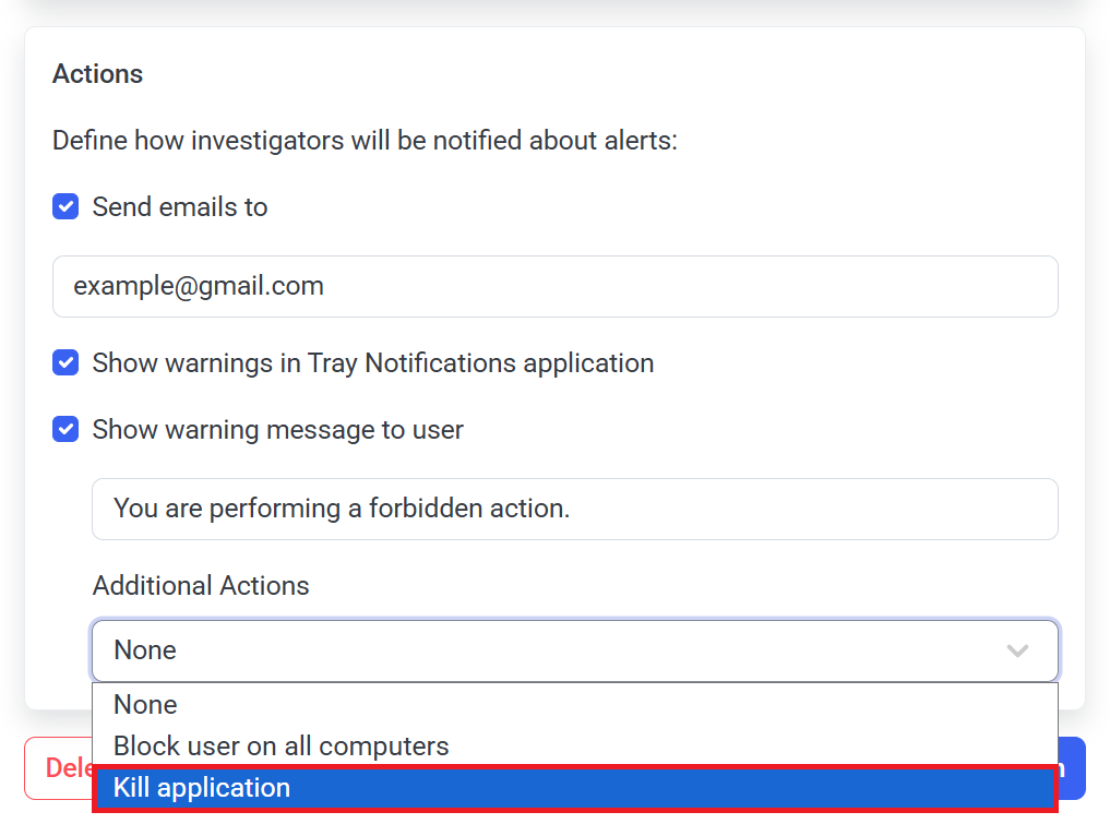 • [Alerts:] The "Kill application" option is now also available for macOS Client computers (and is the same way as for Windows Clients).