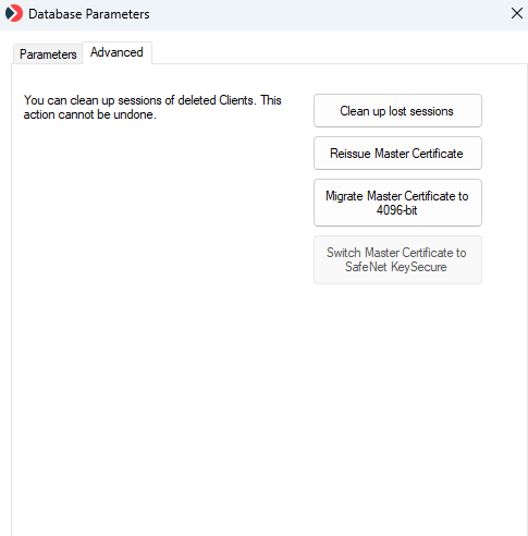 NOTE: After updating to Syteca 7.23 (or higher) for existing deployments, the "Migrate Master Certificate to 4096-bit" button is displayed until the Master Certificate has been manually migrated from RSA-2048 to RSA-4096 encryption, which is optional. Clicking this button will open a series of pop-up windows with instructions on how to migrate the Master Certificate to RSA-4096 encryption (which must be done before clicking the "Reissue Master Certificate" button).