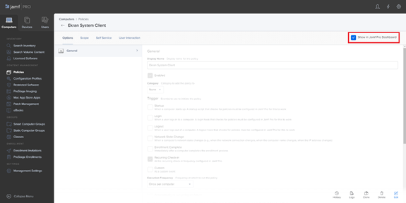 9. Select the Show in Jamf Pro Dashboard checkbox (in the top right).