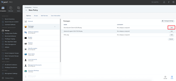 4. Select the Scope tab, then click the Add button on the right and select those computers where you want to install mobileconfig, and then click the Save button (in the bottom right).