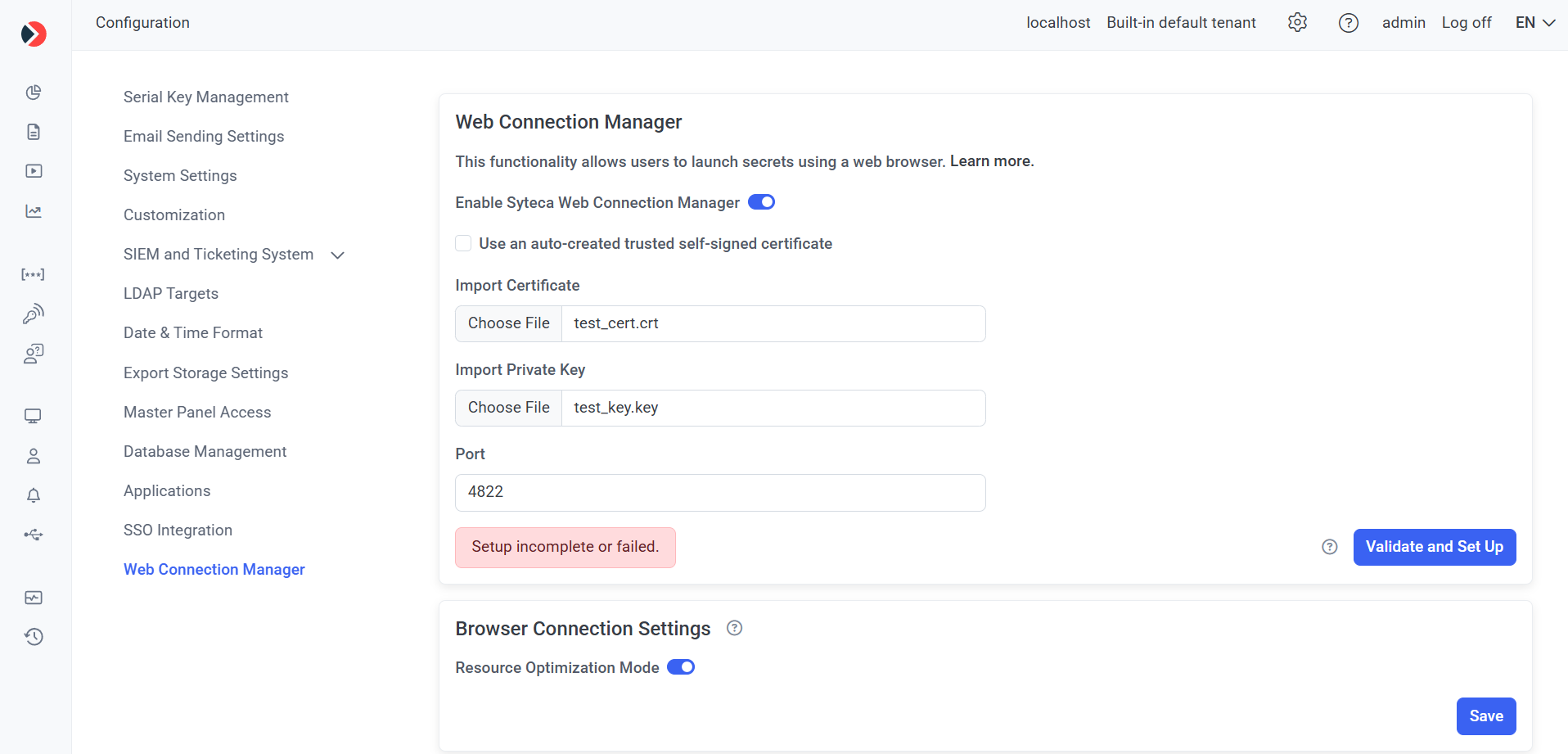 To be able to launch secrets in the browser, Syteca Web Connection Manager first needs to be configured, by doing the following: